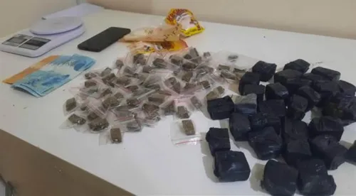 Na abordagem, foram encontrados com ele R$460 e uma porção de maconha. Já na sacola escondida, havia diversas porções do entorpecente embaladas e prontas para venda.