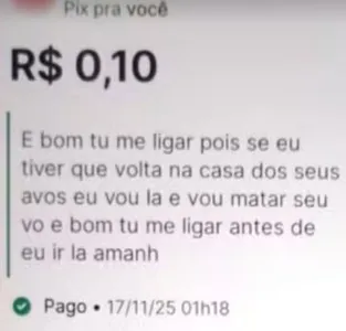 Segundo as investigações, o rapaz preso não aceitou o fim do relacionamento de seis meses. Após ser bloqueado em aplicativos de mensagens e redes sociais, ele passou a realizar transferências de centavos para a conta da vítima. O campo de descrição do Pix era utilizado para enviar recados de morte, como afirmações de que "se não pudesse ficar com a vítima, ninguém mais ficaria".