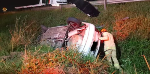 Um jovem, de 21 anos, ficou ferido após perder o controle da direção, capotar o carro e cair dentro de um córrego na BR-277, em Curitiba, capital do Paraná. O acidente aconteceu na noite desta quarta-feira (15), no limite com São José dos Pinhais.