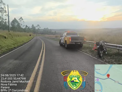 O motociclista sofreu ferimentos e foi socorrido para o hospital de Nova Fátima. As autoridades não realizaram o teste do etilômetro no condutor e a moto foi recolhida ao pátio da PRE.