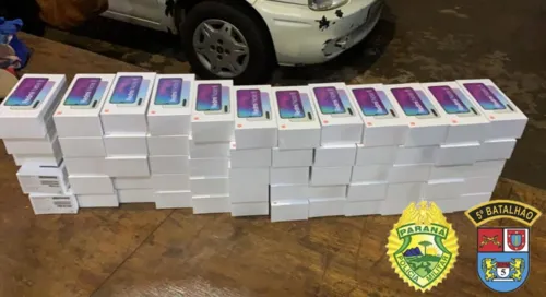 Foram duas abordagens. Na primeira, o carro suspeito era dirigido por um homem de 52 anos. Durante as buscas, dentro do veículo, os policiais encontraram 63 aparelhos de celular de uma marca chinesa. Os aparelhos tinham sido trazidos do Paraguai e não tinham documentação fiscal.