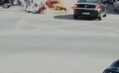 Moto explode após colisão e rapaz sofre queimaduras de segundo grau