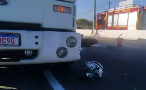 O motociclista bateu em cheio na traseira do veículo de carga e, devido ao impacto, o capacete do homem se soltou. Até o momento, a identificação da vítima não foi divulgada.