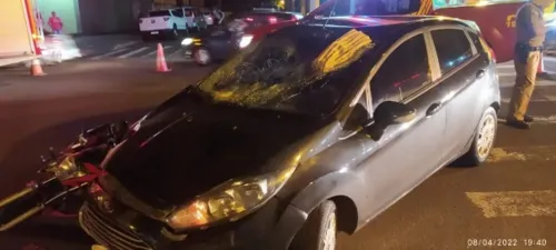Um motociclista, de 53 anos, ficou ferido após bater contra um automóvel na noite dessa sexta-feira, 8, no cruzamento da Avenida Brasil com a Rua Carlos Chagas, na Zona 06, em Maringá. Com o impacto da batida, a vítima chegou a parar no teto do automóvel. As informações são do portal GMConline.