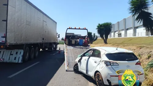 De acordo com a Polícia Rodoviária Estadual (PRE), o carro acabou capotando e ficou contido à margem direita da pista