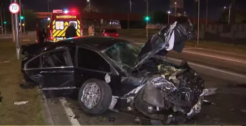 “Ele veio em alta velocidade batendo em tudo. Ele estava bem desorientado, o airbag dele não acionou […] Senti odor etílico”, relatou um motorista que presenciou o acidente.