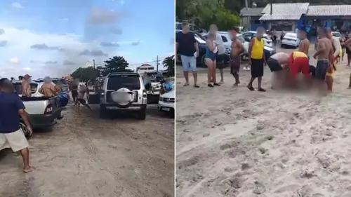 De acordo com a Polícia Civil, a confusão teria começado em um bar e se estendido para a areia. Imagens registradas por testemunhas mostram o suspeito entrando no veículo durante o tumulto e avançando contra os banhistas.