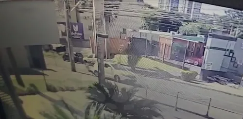 Imagens do circuito de monitoramento mostram a vítima caminhando pela calçada com um guarda-sol, quando um carro estacionado inicia uma manobra de marcha à ré.