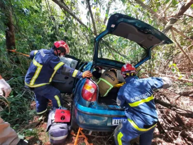 Motorista fica ferido após carro cair em ribanceira no PR