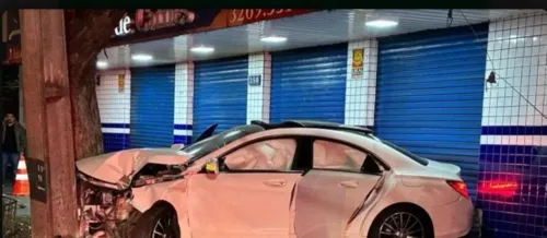 Ainda conforme a Polícia Militar, o condutor estava em alta velocidade quando perdeu o controle da Mercedes e bateu contra um poste e a porta de um estabelecimento comercial.