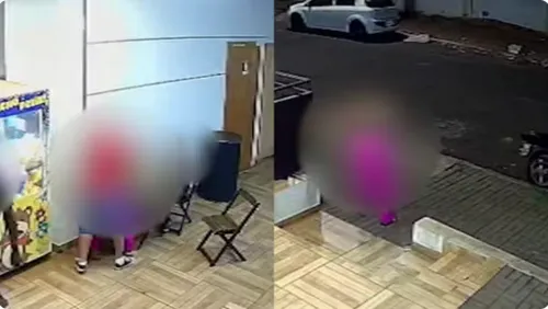 Câmeras de segurança flagraram o momento em que a jovem discutia com o suspeito, de camiseta vermelha. Durante a briga, ele sacou uma faca que carregava no shorts e desferiu os golpes. O crime ocorreu por volta das 20h40.
