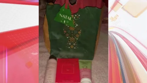 Na imagem é possível ver que a mulher recebeu como "mimo" alguns produtos de beleza. Na publicação feita em dezembro do ano passado, ela colocou lado a lado três cosméticos e uma sacola com tema natalino. "Presentinho de Natal do meu marido", escreveu na legenda.