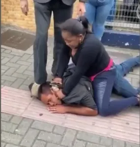 As pessoas presentes no local registraram a ação da vítima. No vídeo é possível ver o assaltante pedindo perdão para a mulher.