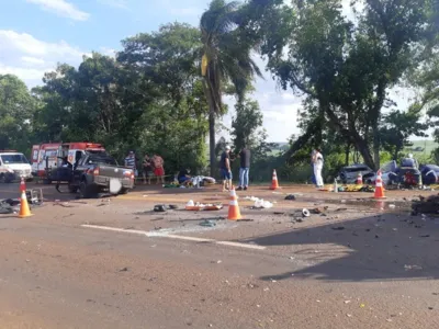 O acidente envolveu um Fiat Strada, com placas de Ubiratã, que segundo a Polícia Rodoviária Federal (PRF), tentava ultrapassar em local proibido e bateu de frente contra um sedan, com placas de Cafelândia.