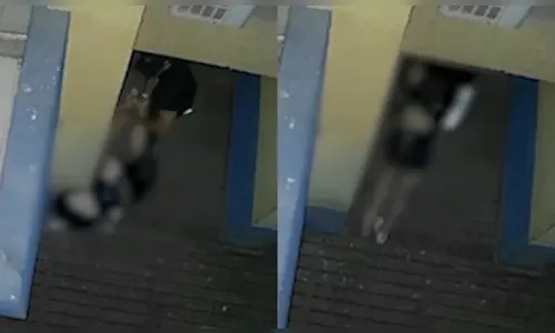 As imagens de segurança mostram a jovem andando ao lado do rapaz. No entanto, quando ambos chegam na entrada do banheiro, o suspeito começa a arrastar a mulher, que grita por socorro e tenta se esquivar, mas acaba sendo puxada e estuprada no local.
