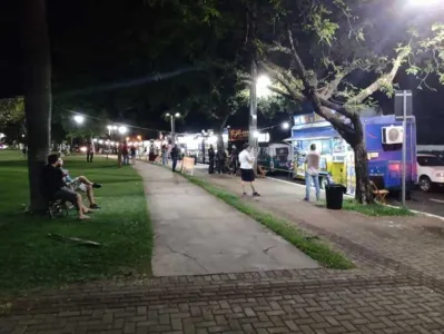 Na praça da Catedral, as equipes vistoriaram os food trucks, que não deveriam estar atendendo no local, segundo a Prefeitura de Maringá. O decreto permite apenas entregas por delivery. As equipes pediram para os proprietários dos food trucks encerrar o atendimento presencial.