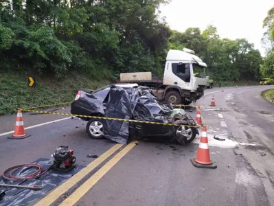 O acidente aconteceu por volta das 18h10 desta terça (29), envolvendo um Renault/Clio, com placas de Cascavel, que seguia no sentido Laranjeiras do Sul-Cascavel e uma carreta, placas de Curitiba, que seguia no sentido contrário.