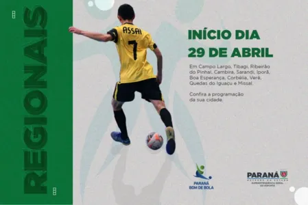A fase regional acontece de sexta-feira (29) a domingo (01) e segue com competições entre os dias 13 a 15 e 20 a 22 de maio e de 03 a 05 de junho. São 12 cidades-sedes: Campo Largo, Tibagi, Ribeirão do Pinhal, Cambira, Sarandi, Iporã, Boa Esperança, Corbélia, Verê, Quedas do Iguaçu, Missal e Marilândia do Sul.