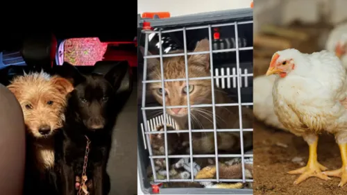 Dois cachorros, um gato e uma galinha foram resgatados de dentro de um carro após um acidente na PR-455, entre Tamarana e Londrina, no norte do Paraná, no dia 10 de setembro. A história foi divulgada pela Polícia Científica do Paraná nesta terça-feira (23).