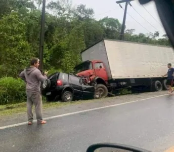 Um acidente fatal foi registrado na tarde desta quinta-feira (18) em uma rodovia que liga Itapoá, Santa Catarina, à Guaratuba, Paraná. Conforme as informações do Corpo de Bombeiros, houve uma colisão frontal entre um veículo Ford Ecosport, que era ocupado por quatro pessoas e tinha placas de Maringá, e um caminhão baú.