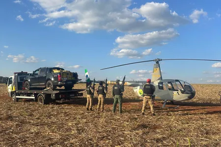 Durante as buscas na zona rural, equipes da 3ª CIPM localizaram uma caminhonete S10 preta carregada com tabletes de droga escondida em uma área de mata. A ação também contou com a participação do Batalhão de Polícia Rodoviária (BPRv) e do Rádio Patrulha do 7º Batalhão.