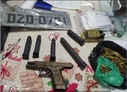 Polícia chegou ao local após denúncia e encontrou uma pistola 9 mm e munições de diversos calibres