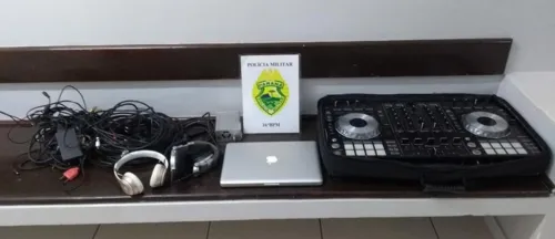 A polícia apreendeu um equipamento de som, que foi levado para a delegacia.