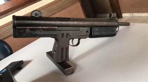 Os policiais iniciaram as buscas e encontraram um saco preto com a metralhadora de calibre 9mm, com capacidade para 40 munições, em seu interior. O suspeito conseguiu fugir.