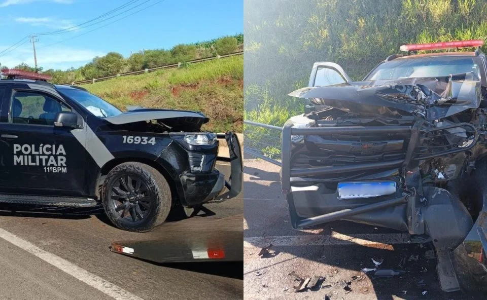 Apesar da destruição da parte frontal do veículo oficial, os agentes sofreram apenas ferimentos leves e já foram liberados após atendimento hospitalar.