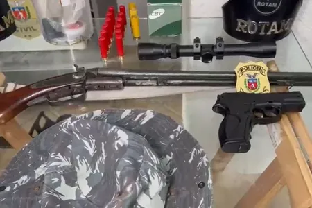Também foram cumpridos dois mandados judiciais, resultando na apreensão de sete armas de fogo com numeração suprimida, centenas de munições de diversos calibres, utensílios utilizados na caça e três animais silvestres mortos - dois tatus e uma paca.