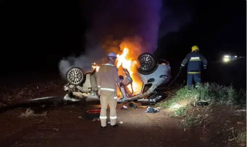 Porsche capota e pega fogo após sair da pista na BR-467, em Cascavel