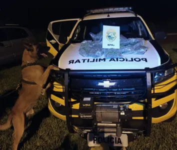 Os policiais verificaram o compartimento de bagagens e identificaram a mala de uma mulher de 22 anos, moradora de Guaíra e o animal confirmou a suspeita do transporte do entorpecente que é conhecido como a 'super maconha', dentre as drogas.