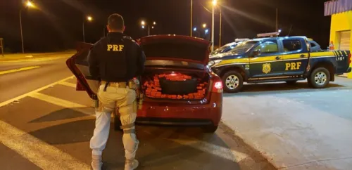Ao receber ordem de parada, o condutor imediatamente obedeceu e desceu do veículo. Durante a abordagem, os policiais constataram que havia cerca de 1160 tabletes de maconha no porta-malas e no banco traseiro do veículo.