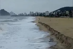 Uma forte ressaca provocou a formação de um barranco de mais de dois metros de altura na faixa de areia da Praia Brava, em Matinhos, no litoral do Paraná. O fenômeno, registrado na manhã desta quarta-feira (08), alterou temporariamente o acesso à praia e chamou a atenção de banhistas.