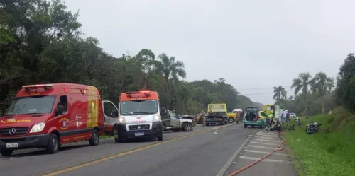 As vítimas foram encaminhadas pela equipe do SAMU para o Hospital Regional do Litoral.