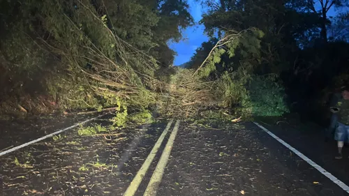 Trechos da rodovia BR-376, entre Mauá da Serra e Ortigueira, registraram quedas de árvores na noite desta quinta-feira (16), na região da Serra do Cadeado.