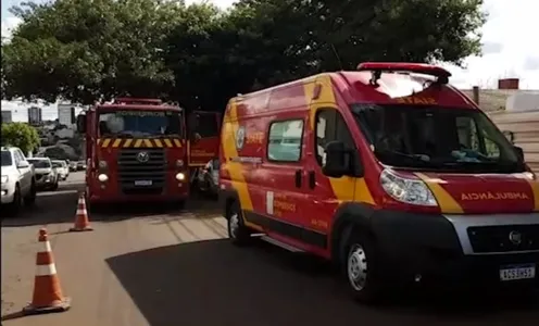 Equipes do Corpo de Bombeiros prestam atendimentos a uma vítima de queda de plano elevado, nesta sexta-feira (6), em Cascavel