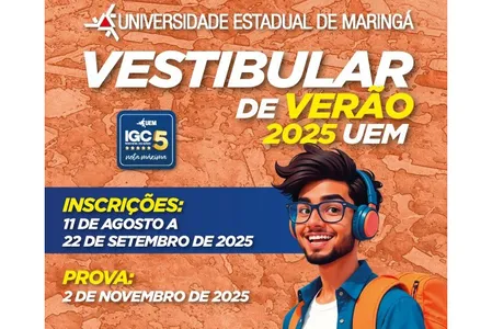 As inscrições para o Vestibular de Verão e o Processo de Avaliação Seriada (PAS) 2025 da Universidade Estadual de Maringá (UEM) terminam nesta segunda-feira (22). Os interessados podem acessar o site ou o app e efetuar a inscrição até 23h59. O valor da taxa do Vestibular é de R$ 194 e do PAS é de R$ 97 e o pagamento pode ser realizado até 24 de setembro.