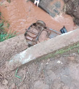 Um carro caiu em um rio no final da tarde desta quinta-feira (18), em Sabáudia, no Paraná. O acidente aconteceu na zona rural da cidade, próximo ao MoliPark. Uma mulher ficou ferida.