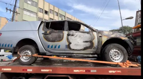 A caminhonete estava estacionada em frente a um hotel da cidade, onde um servidor estava hospedado, quando o crime aconteceu. Uma pessoa, encapuzada, foi quem ateou fogo no veículo e fugiu na sequência.