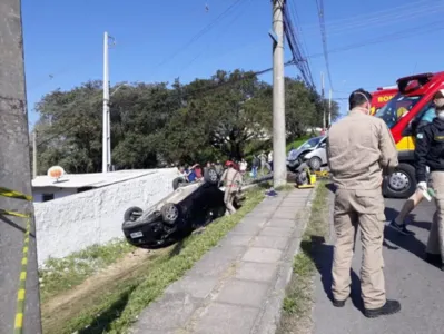 A idosa teve ferimentos leves a criança não ficou ferida. Já a motorista do carro que capotou, de 66 anos, também teve ferimentos sem gravidade. O tenente Filipake, do Corpo de Bombeiros, explicou que a condutora do veículo preto, que caiu na ribanceira, acabou atropelando uma senhora e sua neta que estavam pela rua.