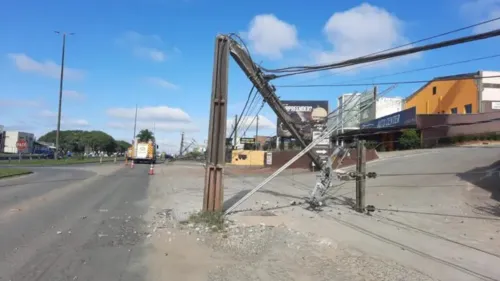Com a batida, cinco postes foram ao chão e um sexto ainda acabou trincado