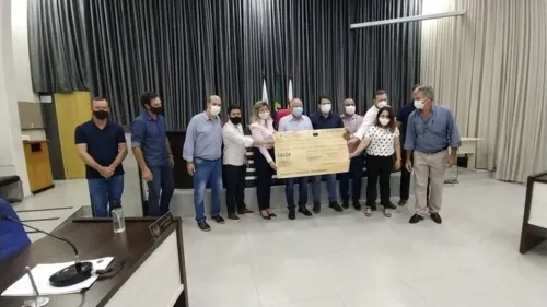 Nesta segunda-feira (12), o presidente da Câmara de Vereadores, Franciley Preto Godoi(Poim), fez a primeira devolução de recursos do seu mandato para a Prefeitura de Apucarana. No momento da entrega do cheque simbólico, no valor de R$ 1 milhão, os vereadores solicitaram que o recurso seja aplicado nas obras do Hospital de Apucarana (HA), anunciado na sexta-feira pelo prefeito Junior da Femac.