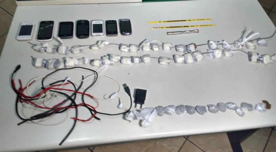 Com eles, foram encontrados seis celulares, 40 porções de maconha, duas serras e uma broca. A dupla foi apreendida e encaminhados à Delegacia. Os dois criminosos já possuem antecedentes criminais.