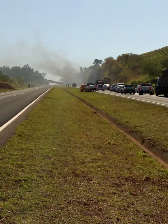 Pane elétrica causa incêndio em caminhão na BR-376 no PR