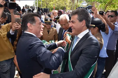 Em seu discurso, o governador afirmou que tem procurado se inspirar em alguns programas sociais adotados pelo governo de Goiás e enalteceu a trajetória de Marconi Perillo. “Um homem público dos mais preparados e respeitados do Brasil, quarta vez governador de Goiás. Tenho o privilégio de desfrutar de sua amizade e ser o seu correlegionário”. REPUBLICANAS - A Ordem do Mérito Anhanguera foi criada em 1975 para homenagear pessoas ou instituições reconhecidas por seus relevantes serviços nas mais variadas atividades.