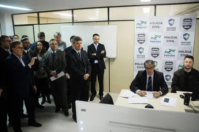 MODERNIZAÇÃO - “É um momento importante porque a Polícia Civil está se modernizando, trazendo novos equipamentos, aplicando tecnologias no trabalho policial, trazendo mais efetividade e economia não medindo esforços para prestar o melhor serviço pra comunidade”, avaliou o secretário da Segurança Pública e Administração Penitenciária, Wagner Mesquita, que acompanhou a audiência.“É sem dúvida um dia histórico para a Polícia Civil do Paraná, quando a gente começa a implementar o uso de uma ferramenta tecnológica que vai dar celeridade às investigações, efetividade e mais do que isso, qualidade à prova, as oitivas de testemunhas, interrogatório de investigados, além de otimizar o uso dos nossos recursos humanos”, complementou o secretário.