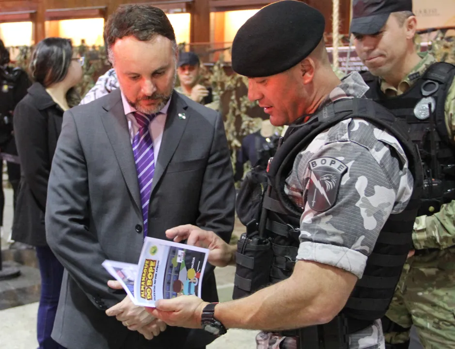 O secretário estadual da Segurança Pública e Administração Penitenciária, Wagner Mesquita de Oliveira, visitou quinta-feira (04) a exposição de viaturas, equipamentos de seis subunidades do Batalhão de Operações Especiais (Bope) no Shopping Estação, no bairro Rebouças, em Curitiba.