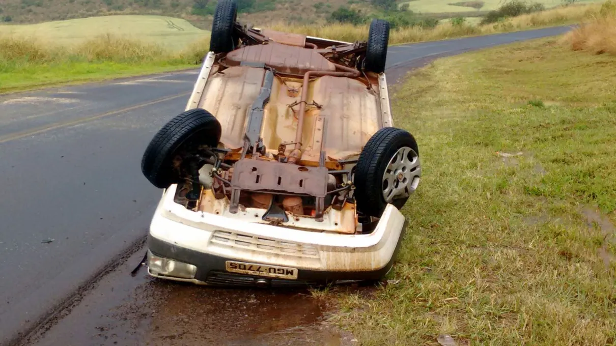 Motorista perde controle da direção e carro capota na PR-170 em Borrazópolis