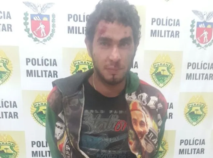 Os policiais chegaram e constataram que o ladrão segurava um pedaço de laje. Fernando da Rocha Guimarães foi preso e encaminhado à Delegacia de Jandaia do Sul.